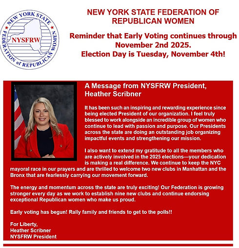 Congratulations to the New slate of New York State Federation of Republican Women (NYSFRW) Officers who were sworn in May 5, 2025